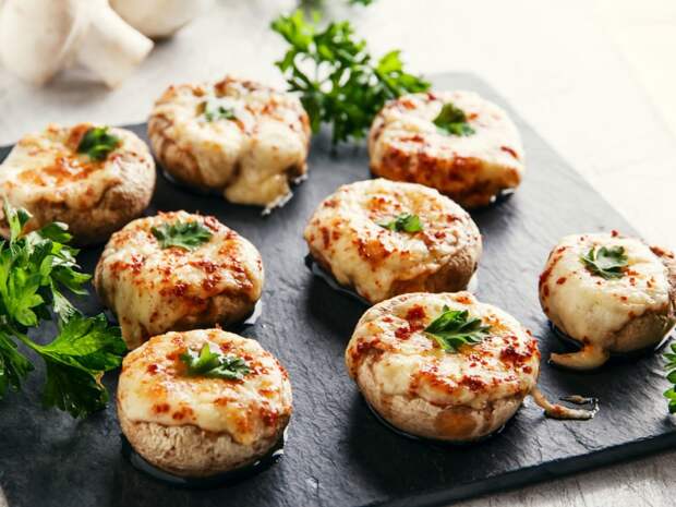 Пока большая часть школьников и офисных сотрудников перешла на удаленную работу, мы предлагаем вам научиться готовить что-то новое. Сегодня мы научим вас готовить запеченные шампиньоны с сыром, курицей и чесноком.